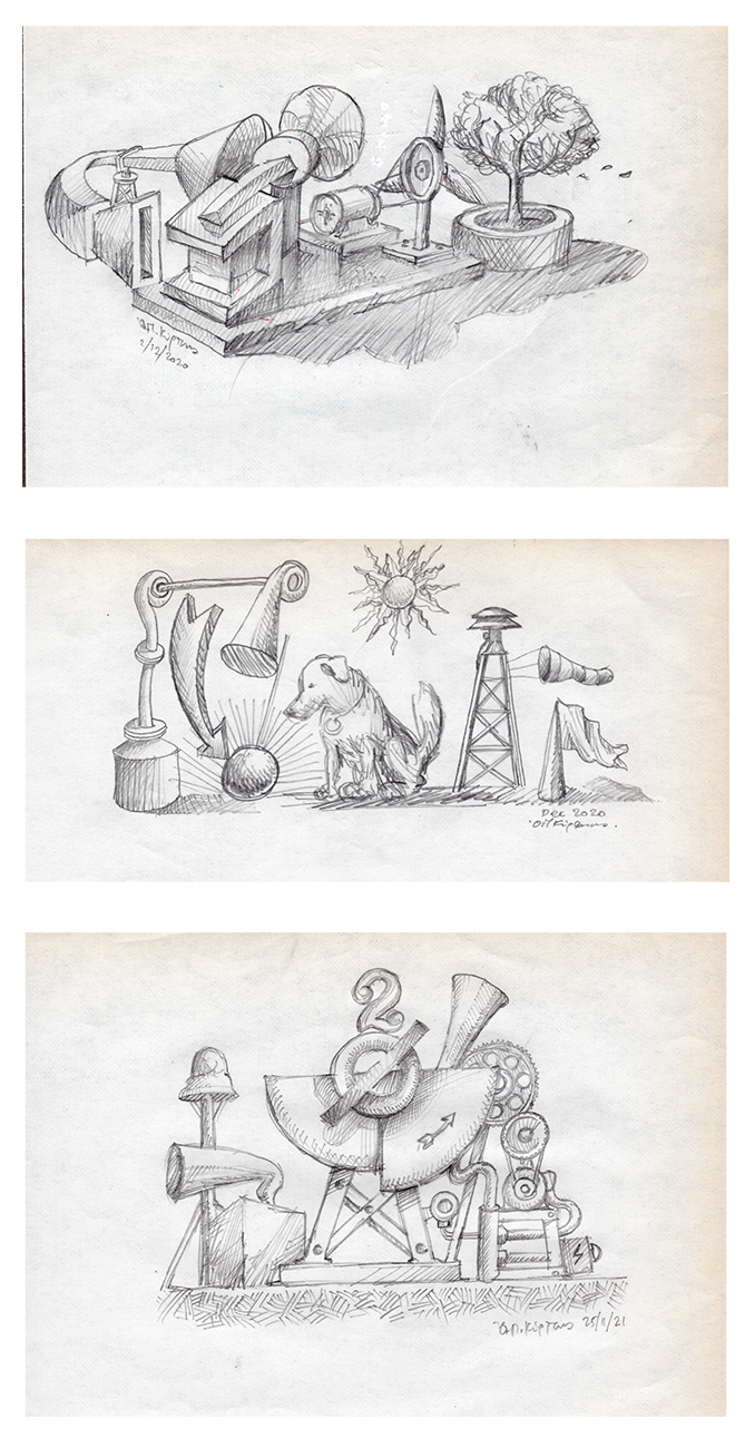 Τα «Τηλεφωνικά Ασυνείδητα» είναι ζωντανά κύτταρα που αναπαράγονται μέσω της αυτόματης γραφής συνειρμών που συμβολοποιούνται. Η μόνη προσπάθεια κατά την εξέλιξή τους είναι να μην ξεφύγουν από αυτή την άναρχη σύμβαση ή καλύτερα να περιοριστεί ο έλεγχος και η αναδόμησή τους, να παρέμβει ελάχιστα η λογική της σύνθεσης κυριαρχώντας η ενστικτώδης αισθητική, παρασυρμένη από τις λιγότερο θεατές πτυχές του νου. Δημιουργούνται εν μέσω μη δημιουργικών ενασχολήσεων - όπως τα τηλεφωνήματα - και για να ωριμάσουν απαιτείται ουδέτερος χρόνος. Αποτελούν κώδικες που η αποκρυπτογράφησή τους εκπλήσσει ακόμη και τον δημιουργό τους, όμως δεν αποκαλύπτουν μία αμιγώς προσωπική ψυχανάλυση του εικαστικού υποκειμένου, παρά τα επαναλαμβανόμενα «κατατεθέντα» αυτοαναφορικά σήματα. Αποκτούν προοδευτικά τον χαρακτήρα χαρτογράφησης συλλογικών νευρώσεων, με τη συμβολή της ασυνείδητης ασυδοσίας των ονείρων, αλλά ταυτόχρονα και με αμείλικτο υλισμό, δημιουργώντας την αντίφαση ενός σουρεαλιστικού τοπίου με θαυματουργικές προεκτάσεις, υφασμένου με ρεαλιστικά υλικά σχεδόν μαθηματικής συναρμογής.