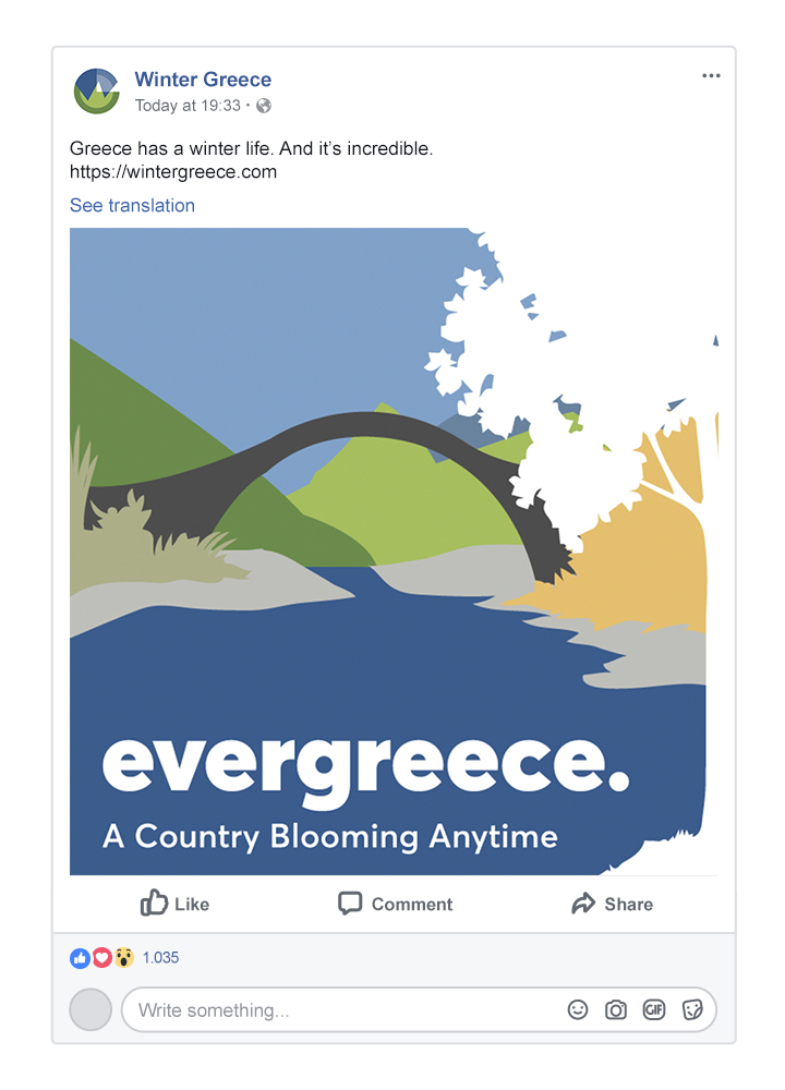 The campaign is built around the ‘evergreen’ concept, αειθάλεια in Greek – A country blooming anytime. The tagline is obviously a wordplay between evergreen and Greece.