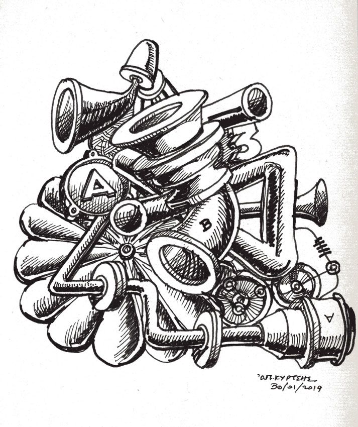 Τα «Τηλεφωνικά Ασυνείδητα» είναι ζωντανά κύτταρα που αναπαράγονται μέσω της αυτόματης γραφής συνειρμών που συμβολοποιούνται. Η μόνη προσπάθεια κατά την εξέλιξή τους είναι να μην ξεφύγουν από αυτή την άναρχη σύμβαση ή καλύτερα να περιοριστεί ο έλεγχος και η αναδόμησή τους, να παρέμβει ελάχιστα η λογική της σύνθεσης κυριαρχώντας η ενστικτώδης αισθητική, παρασυρμένη από τις λιγότερο θεατές πτυχές του νου. Δημιουργούνται εν μέσω μη δημιουργικών ενασχολήσεων - όπως τα τηλεφωνήματα - και για να ωριμάσουν απαιτείται ουδέτερος χρόνος. Αποτελούν κώδικες που η αποκρυπτογράφησή τους εκπλήσσει ακόμη και τον δημιουργό τους, όμως δεν αποκαλύπτουν μία αμιγώς προσωπική ψυχανάλυση του εικαστικού υποκειμένου, παρά τα επαναλαμβανόμενα «κατατεθέντα» αυτοαναφορικά σήματα. Αποκτούν προοδευτικά τον χαρακτήρα χαρτογράφησης συλλογικών νευρώσεων, με τη συμβολή της ασυνείδητης ασυδοσίας των ονείρων, αλλά ταυτόχρονα και με αμείλικτο υλισμό, δημιουργώντας την αντίφαση ενός σουρεαλιστικού τοπίου με θαυματουργικές προεκτάσεις, υφασμένου με ρεαλιστικά υλικά σχεδόν μαθηματικής συναρμογής.