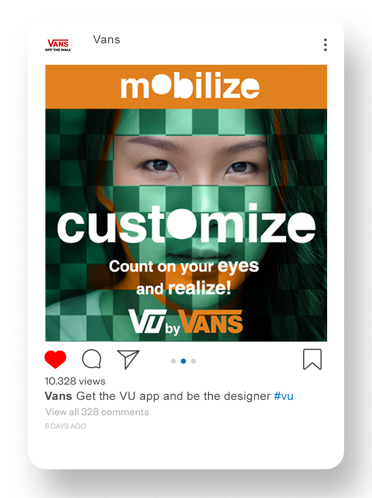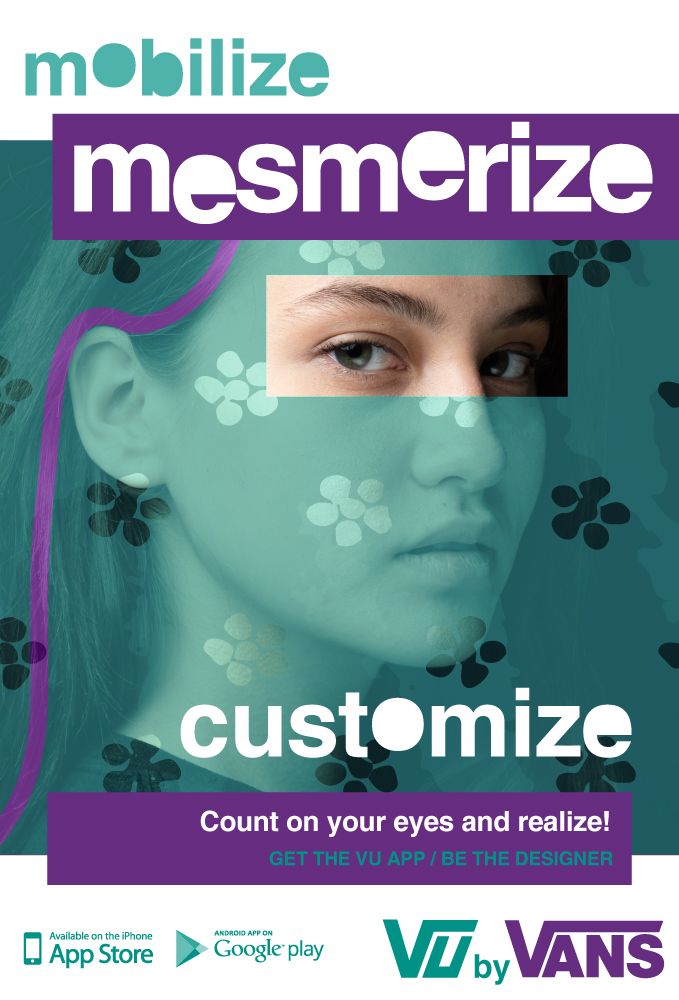 The concept is built around a primary wordplay – a rhyme between words that express creativity and action with the suffix -ize and the actual word eye in plural, that is ‘eyes’. Eyes symbolize the vision and every visual process, and more than that visual expression. This connection is supported in the second tagline ‘count on your eyes and realize’ where visual expression and creativity lead to actual realization of the garments. The word mobilize is another wordplay: taking action with the use of the mobile phone; a reference to the actual downloadable application for the mobile device. While ‘mobilize and customize’ are common in all visuals, the central tagline differs in every execution; is the one that conveys inspiration.