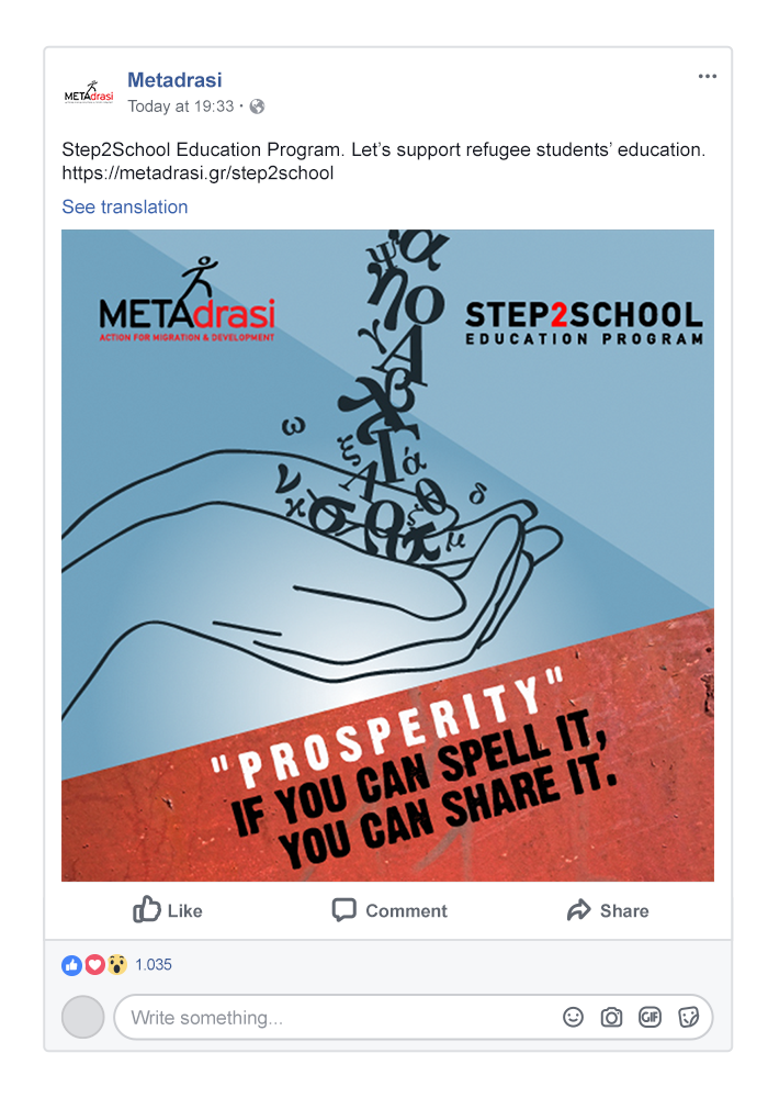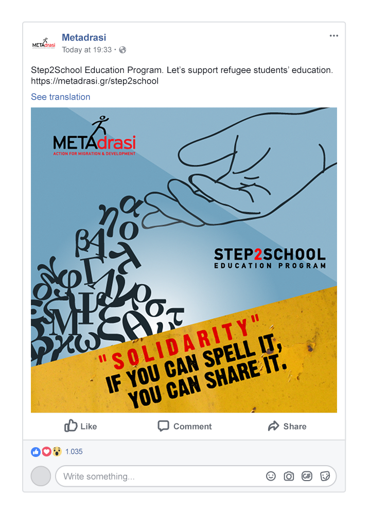 The concept focuses on a positive aspect related with solidarity, respect, equality and giving. We want to concentrate on “good” things locals can offer to refugee children, rather than cause guilt to the audience by describing once again the harsh conditions they are obliged to live in. Donating is a positive action and needs to be motivated through a positive campaign.